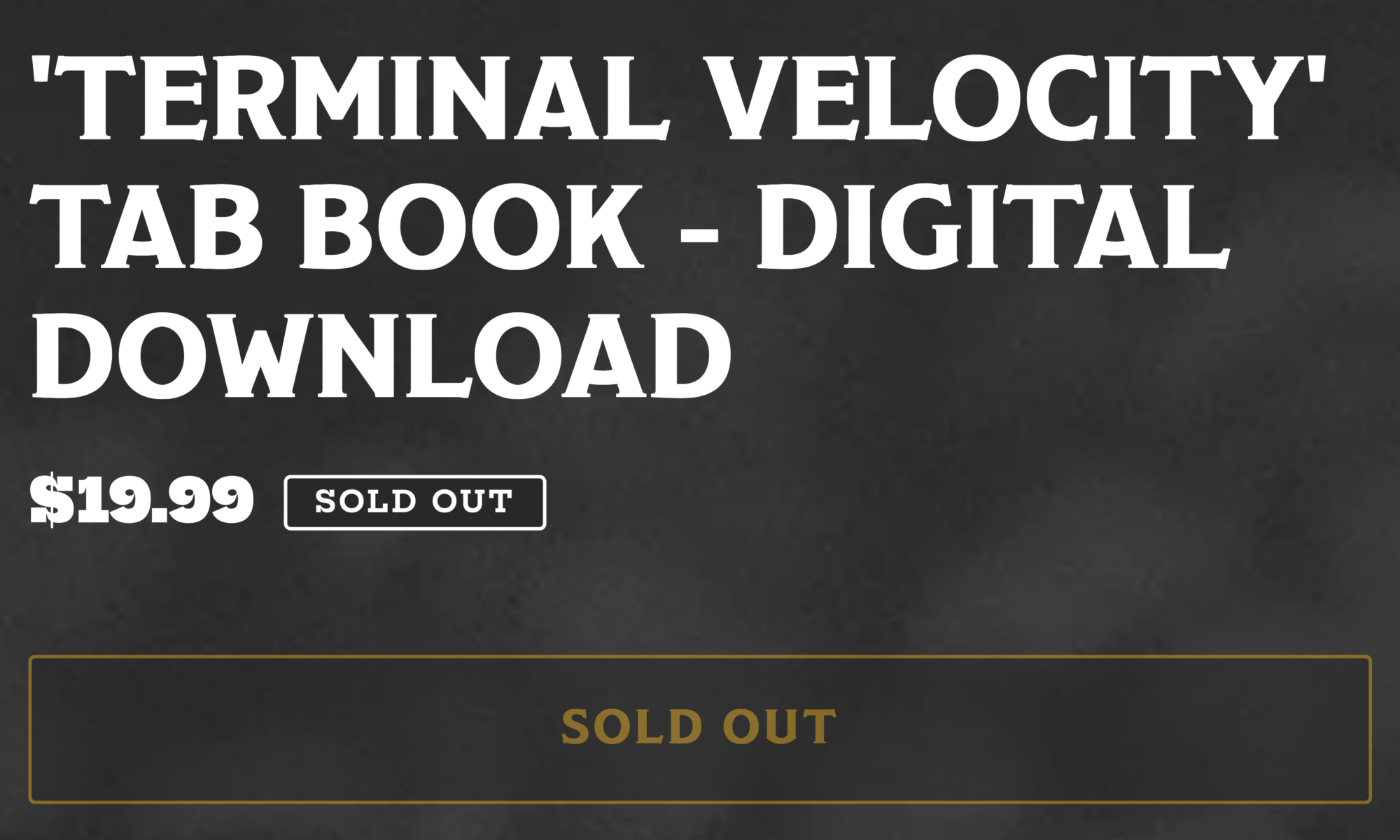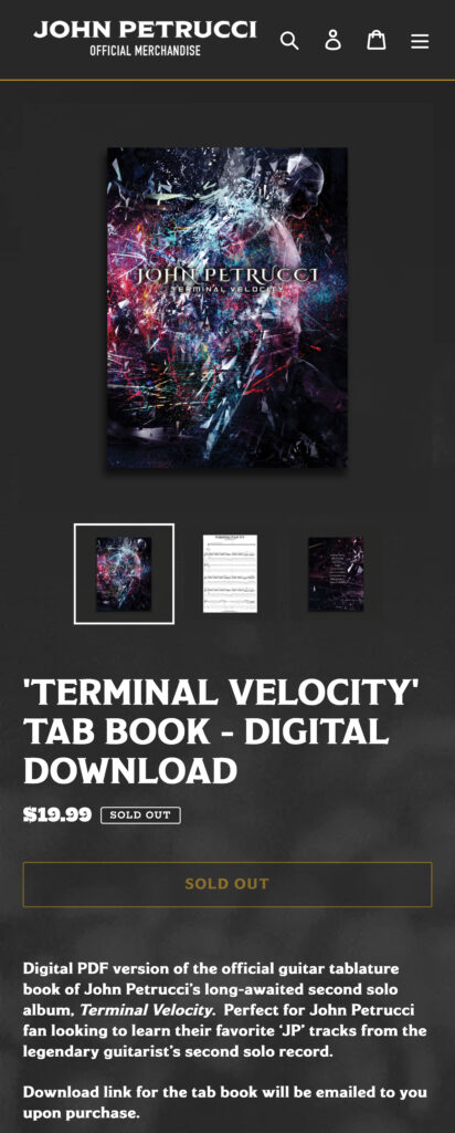 I recently checked John Petrucci’s website and found out that his Merch Store ran out of PDFs of “Terminal Velocity” Tab Book Digital Download.